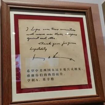 "希望中美两国永远不要兵戎相见!"基辛格在连队留言簿上写下这句话,饱含着对和平的向往,对人类命运的思索。他深知,战争带来的只有伤痛和苦难,只有和平与合作才能让人民安康,让世界繁荣。